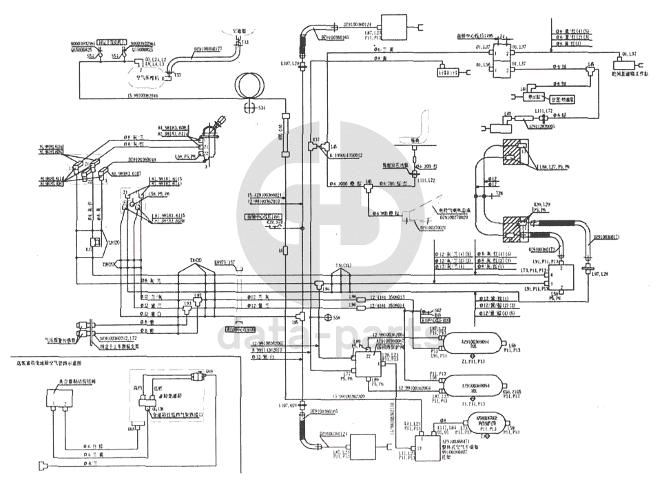 Схема тормозной системы для бортовых автомобилей 4x2 и 6x2 MAN-F2000 (SX3254JS384)