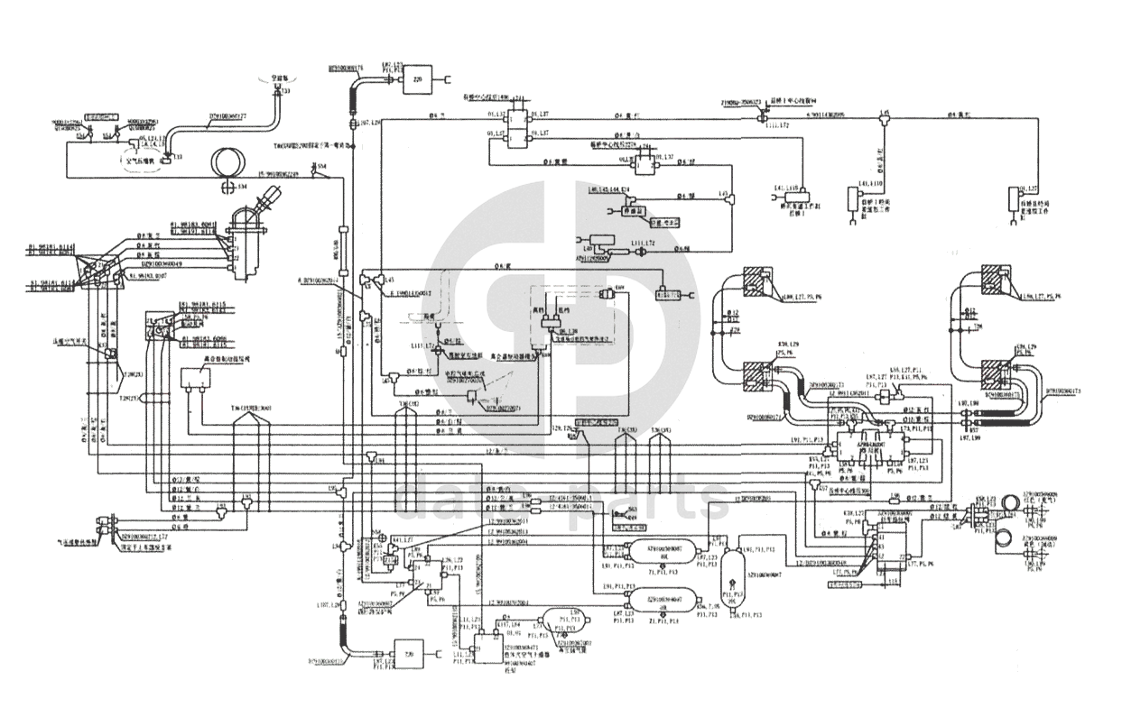 Схема тормозной системы для тягачей 6x4 MAN-F2000 (SX3254JS384)