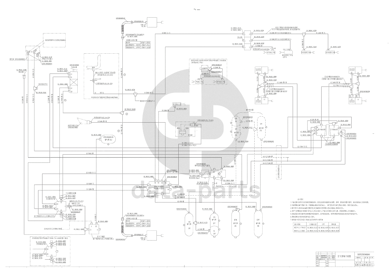 Dual-circuit brake system (6x4)