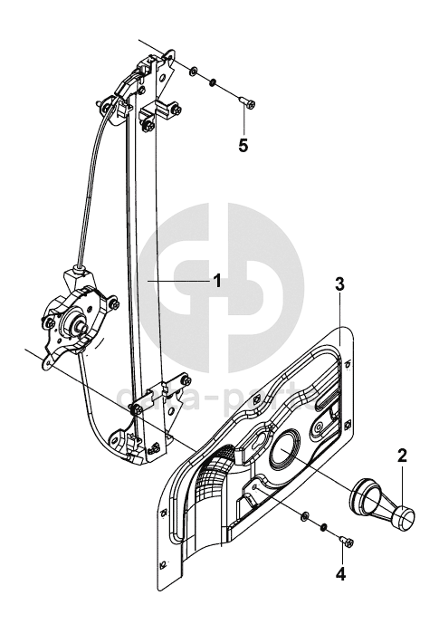 Right door window regulator, manual