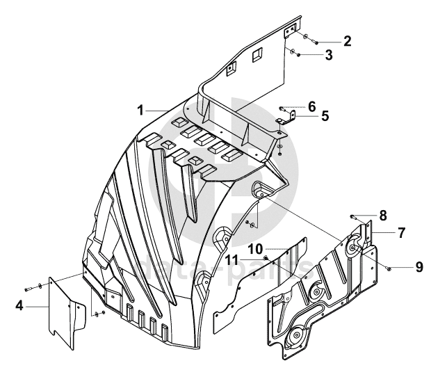 Right upper inner mud guard assembly
