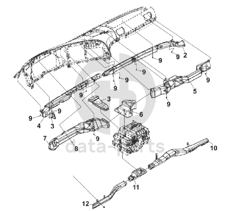 Верхний воздуховод со стороны водителя