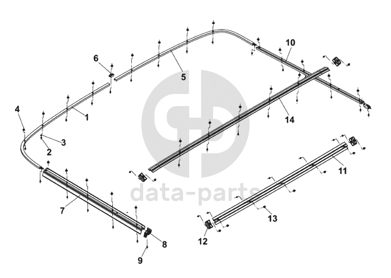 Направляющая левой шторы в сборе